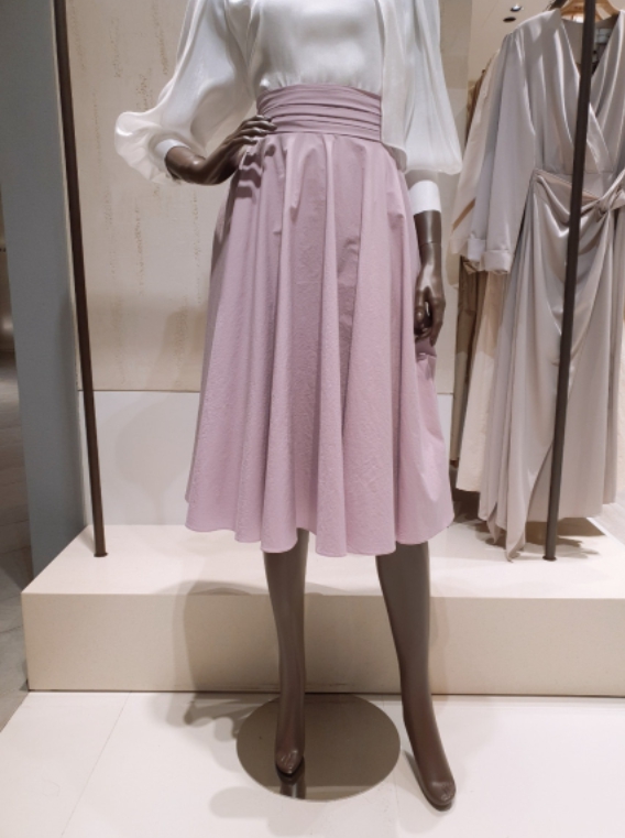 함께 매치한 스커트도 파슨스 제품! 차분하게 채도를 낮춘 스커트로 찰랑찰랑 떨어지는 A라인이 예쁜 스커트입니다.