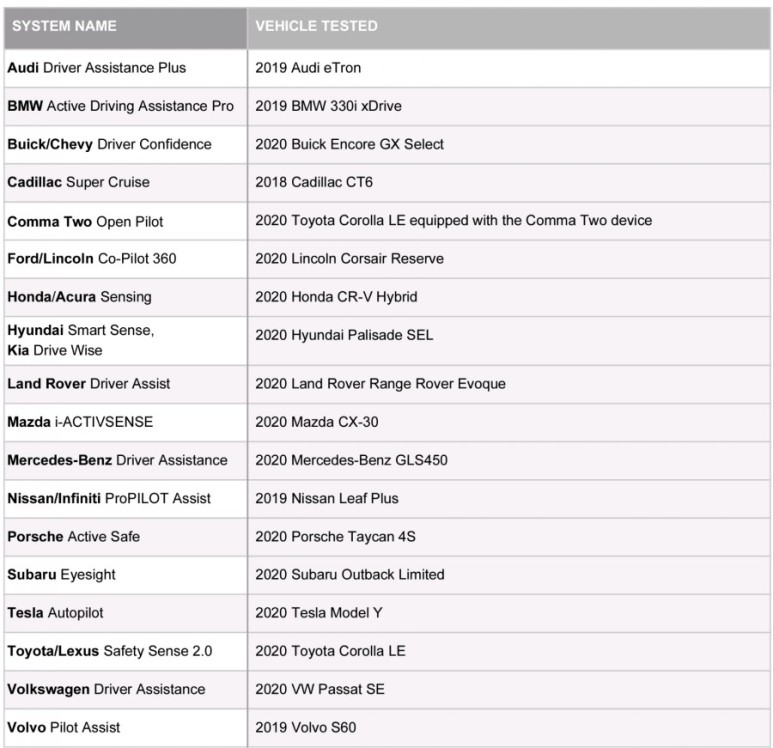 이상의 각 메이커별 최신 차량 17대를 대상으로 메이커의 자율주행 및 주행 보조 시스템을 평가했습니다.