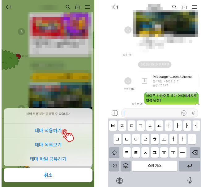 아이메시지 모드 및 다양한 배경설정방법 아이폰 카카오톡 테마변경! 깔끔한 카카오톡