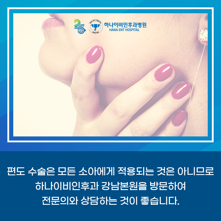 어린이들에게 편도염 증상이 나타날 경우 PITA 수술을 시행합니다. PITA 수술은 편도피막은 보존하고 조직만 제거하는 부분절제술입니다. 따라서 편도 주변부 조직의 손상이 적고 비교적 출혈이나 통증이 적고 회복이 빠르다는 장점이 있습니다. 편도수술은 만 3세, 15kg 이상이면 할 수 있지만 모든 소아에게 적용되는 것은 아니므로 하나이비인후과 강남본원을 방문하여 전문의와 상담하는 것이 좋습니다.