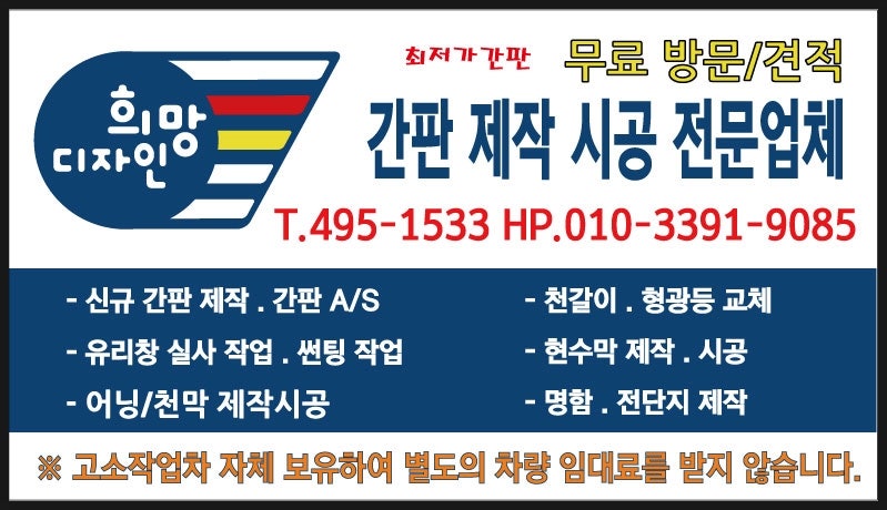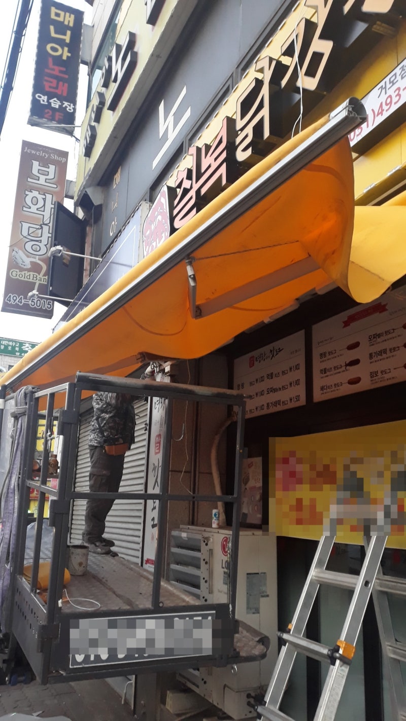 간판과 어닝 설치가 끝났고 지금은 선팅입니다.너무 더워서 빨리 선팅을 마치고 내부로 들어가 포맥스(간판) 팻말을 설치해야 합니다.