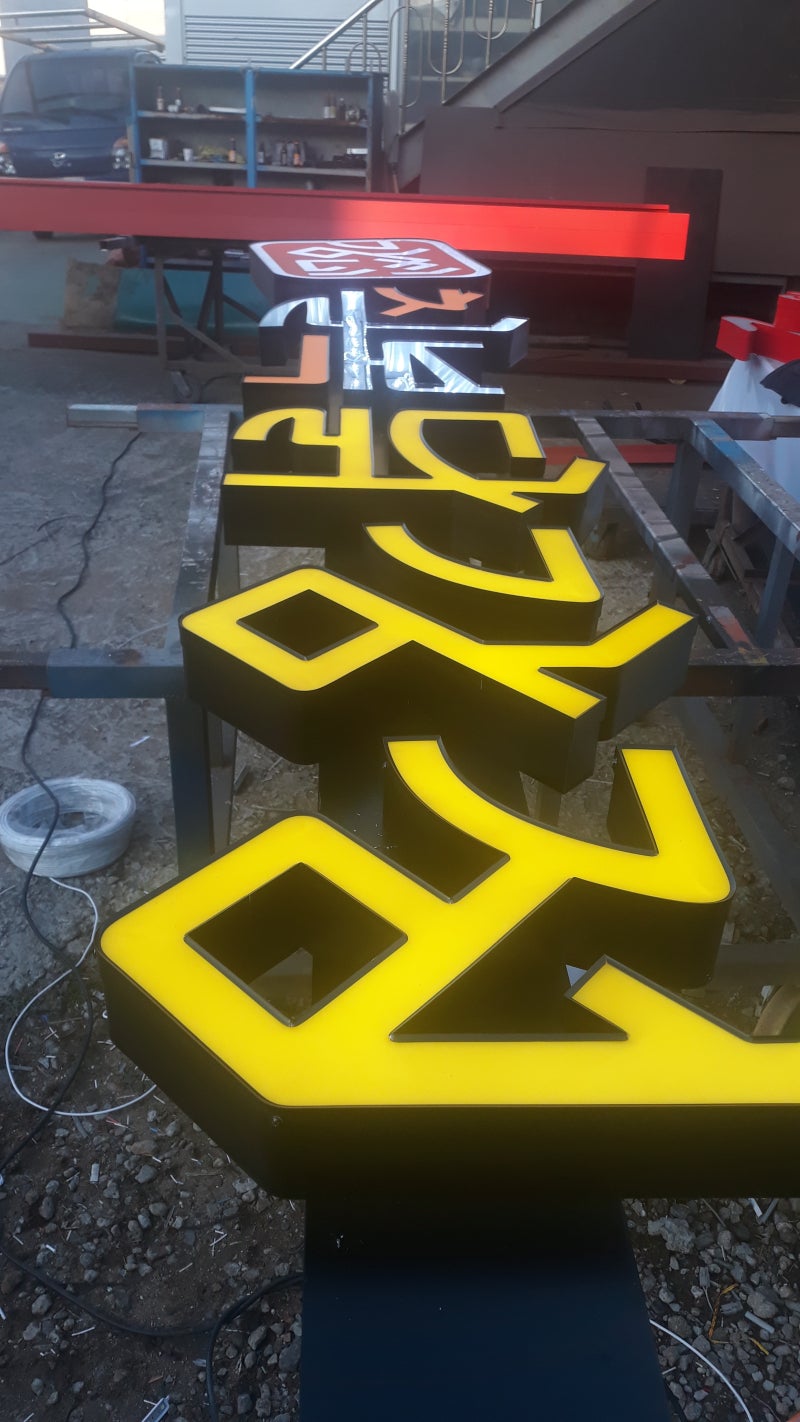 어닝을 설치하고 즉시 LED 채널 간판을 설치합니다.제작한 간판의 크기는 3500x600mm로 제작하였습니다.
