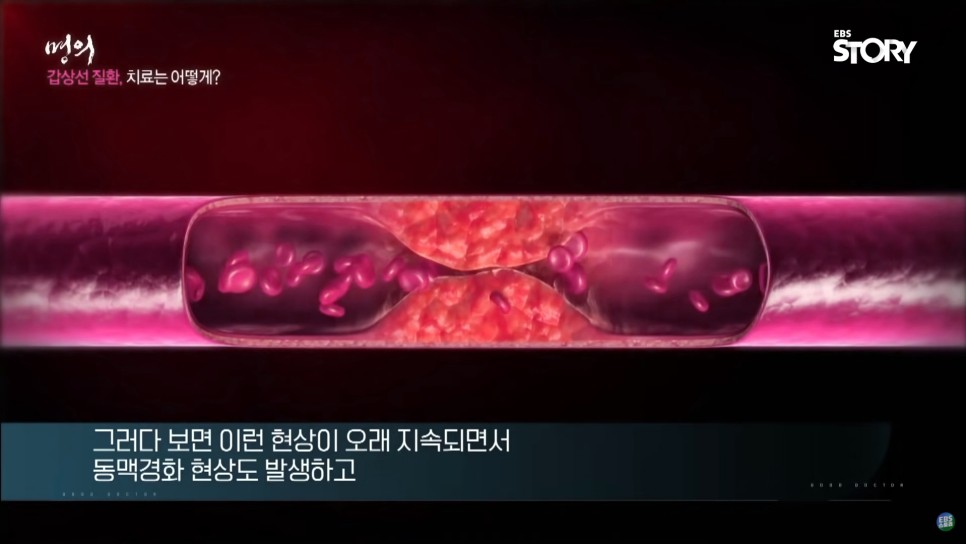 갑상선 호르몬은 나쁜 콜레스테롤 LDL을 제거하는 역할을 하지만 호르몬이 줄어들어 혈관에 동맥경화를 일으키게 됩니다.