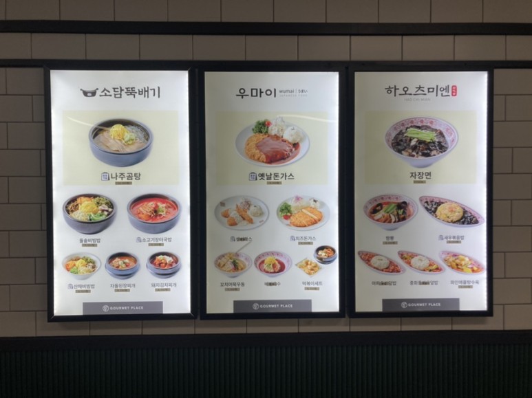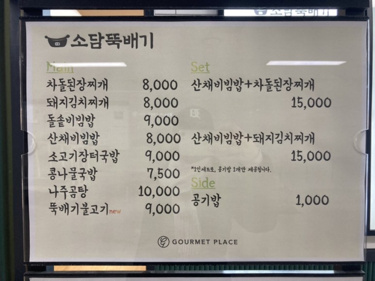 #고메 플레이스 메뉴입니다. 소담뚝배기/맛있다/는 떡동산에서 원하는 음식을 골라 드시면 됩니다.