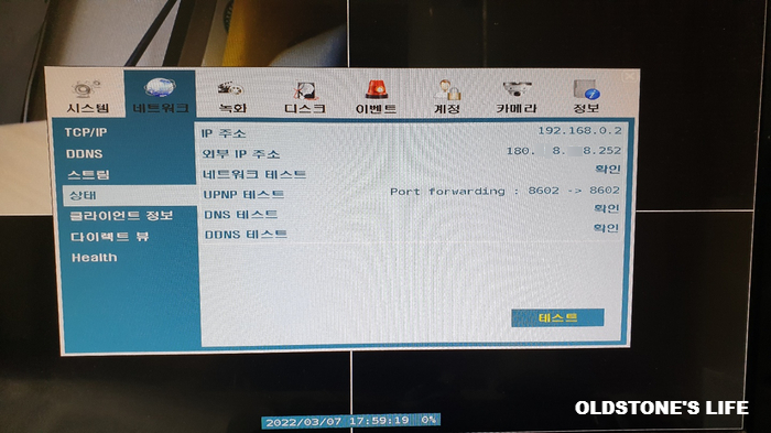 인터넷 모뎀, 공유기, DVR의 모든 장비가 제대로 작동하고 있는지 테스트해 보면 모든 것이 정상!