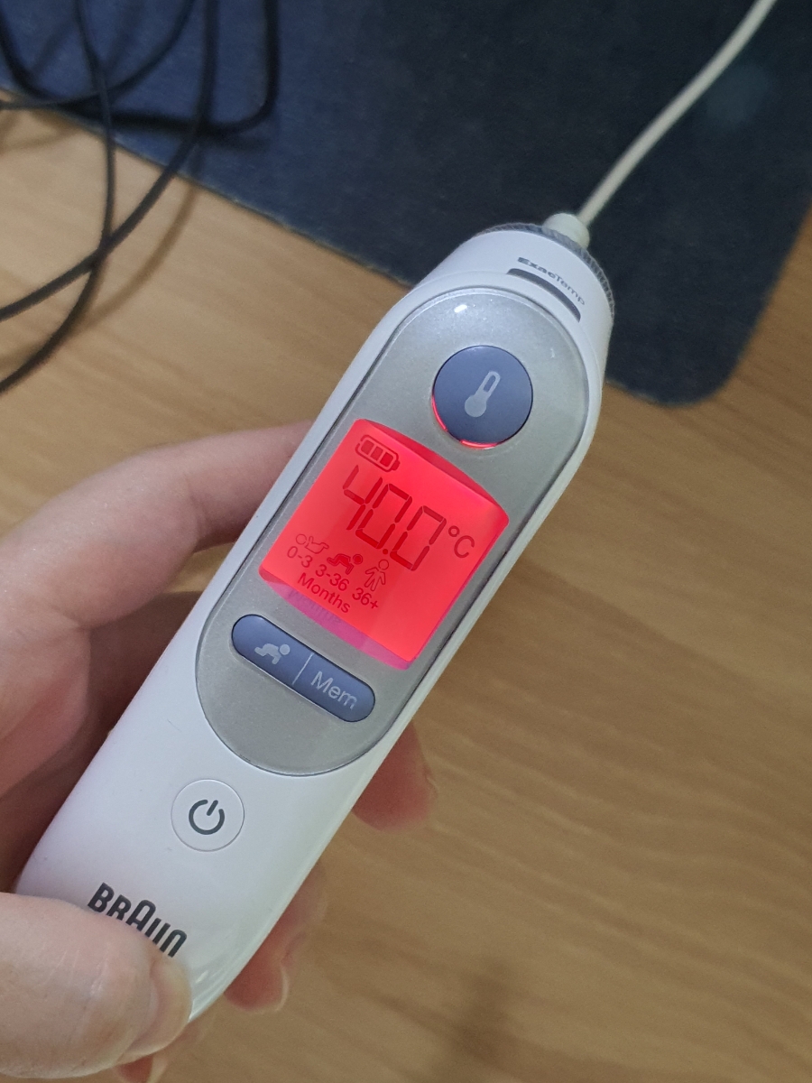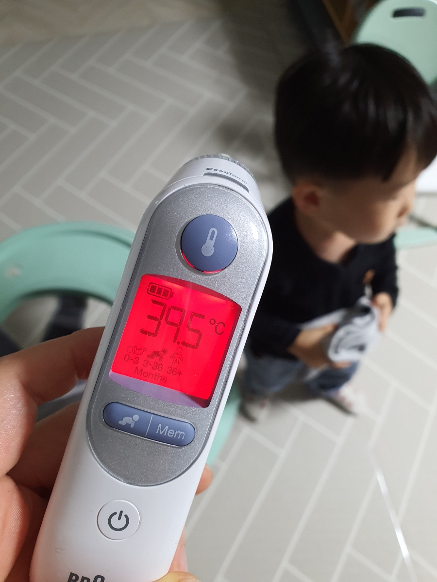 집에 가는 길에 졸려서 낮잠을 잤지만 2시간이 되도록 일어나지 않았다.혜나가 놀다가 계속 투덜거리며 장난감 소리를 내면 겨우 일어나서 나오는데 표정이 좋지 않다.인상을 찌푸리고 있어서 얼굴이 부르륵. 온몸이 불덩어리다.깜짝 놀라서 열을 재보니 40.5도!! 해열제 하나를 먹이고 급히 병원으로 달려갔다. 병원에 가기 직전 39.5