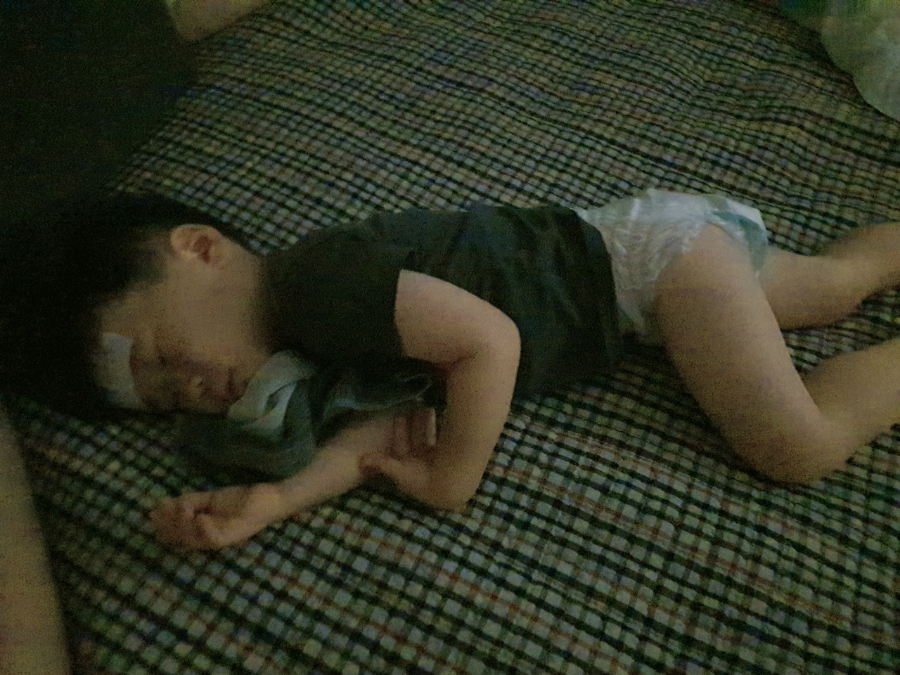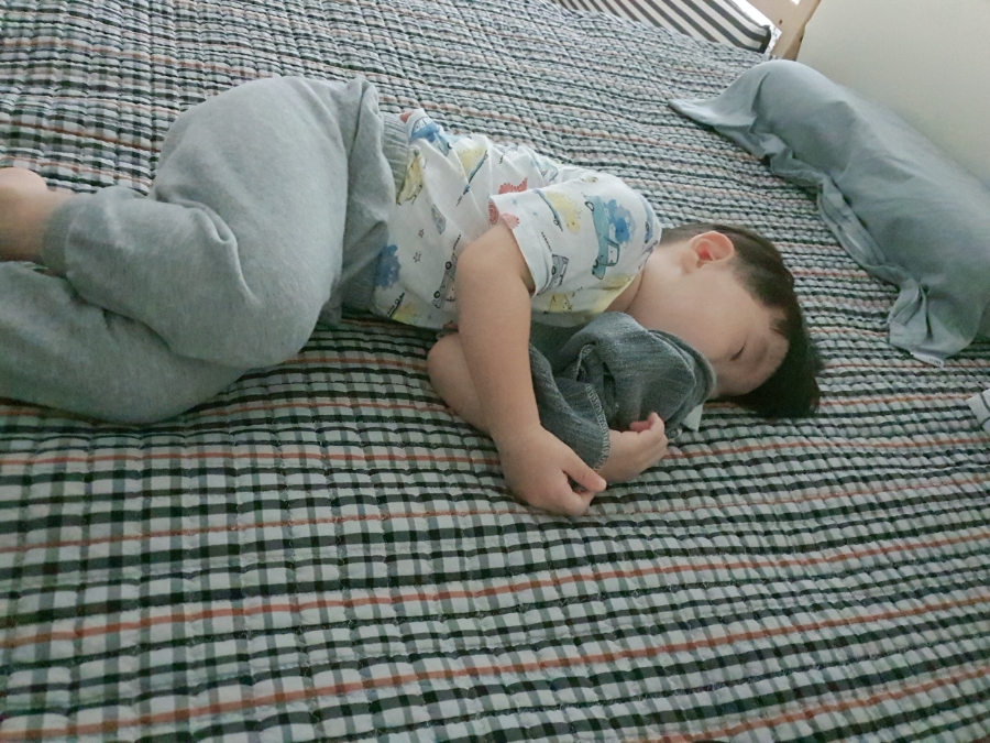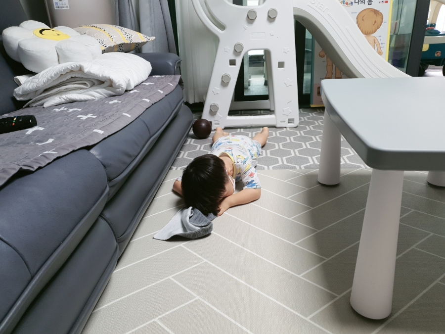 웬만해서는 소파에서 이렇게 잠이 드는 법이 없다.얼마나 힘들었으면 이럴까 안쓰러웠다.불이 환하게 켜진 거실이 있고, 깨어나 이유식과 분유를 마시고 놀면서 떠드는데 일어나지 않았다.다시 열이 40도.