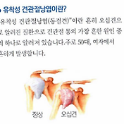 오십견, 동결견, 유착성 관절낭염의 원인인 팔의 움직임에 제한이 따르면 정말 불편하다.팔을 들어 돌려 뒤로 젖히거나 하면서 원하는 만큼 움직여야 하는데 그렇지 않아 삶의 질이 떨어진다.오십견은 동결견이라 불릴 정도로 딱딱한 느낌이 드는 것이 특징이다.오십견, 동결견, 유착성 관절낭염은 모두 같은 증상을 보이는 질환이다.