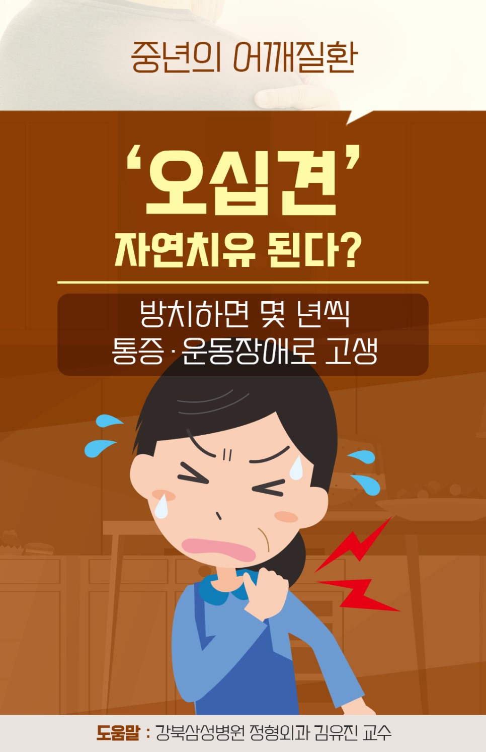 하지만 오십견은 관리가 느리면 몇 년씩 심한 어깨 통증과 운동 장애를 경험하므로 초기부터 치료하는 것이 중요합니다. 강북삼성병원 정형외과 김유진 교수의 도움말로 오십견의 원인과 특징, 치료 및 관리법에 대해 자세히 알아보겠습니다.