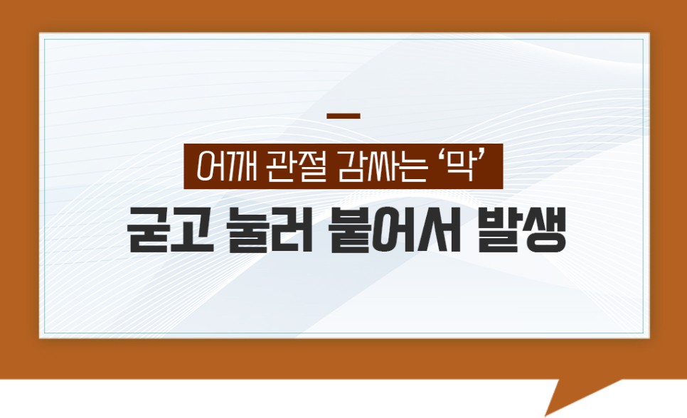 오십견은 어깨 관절을 감싸는 막과 주변 조직의 염증 때문에 유착이 생기는 질환입니다. 오십견이 발생하면 어깨 주변 조직이 달라붙어 통증과 함께 능동적·수동적 운동이 모두 어려운 관절운동 장애가 나타납니다.
