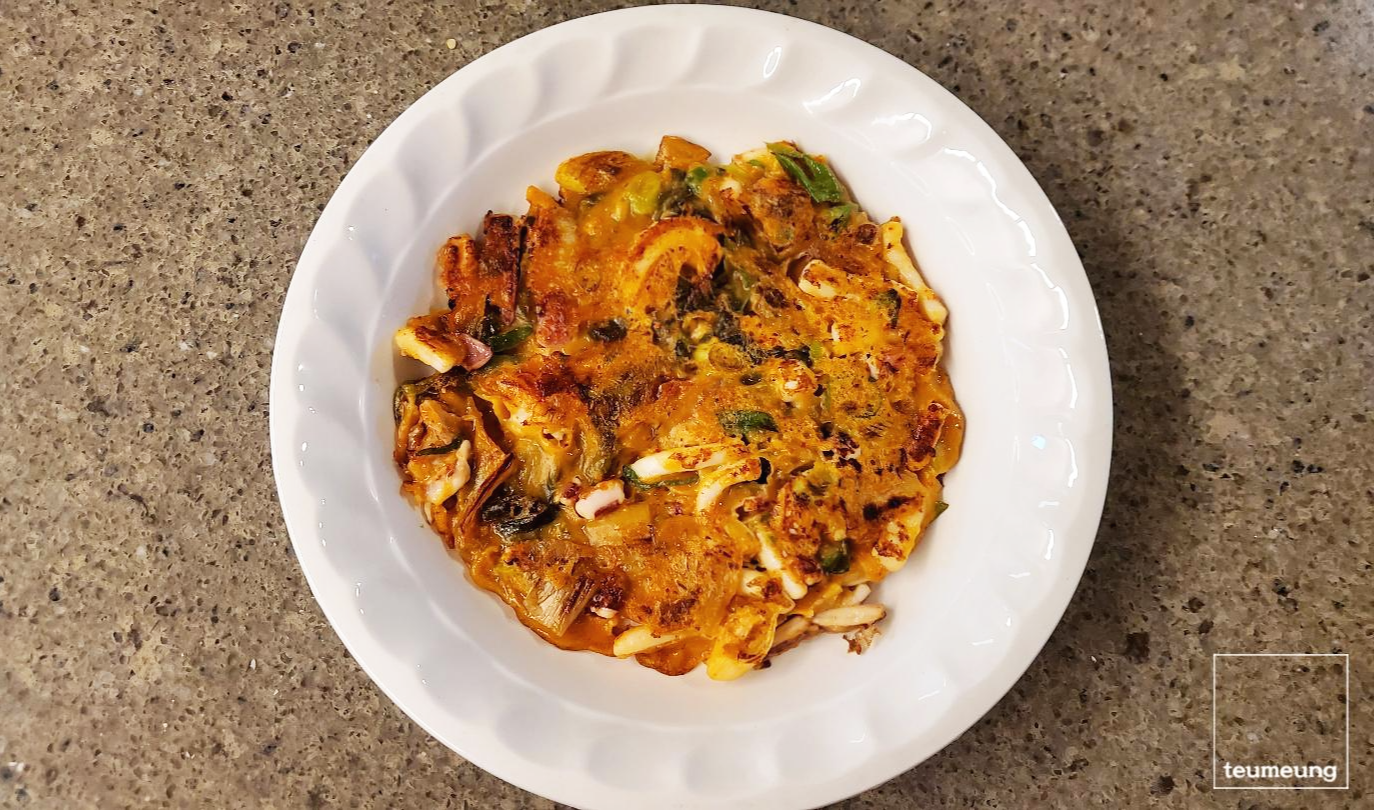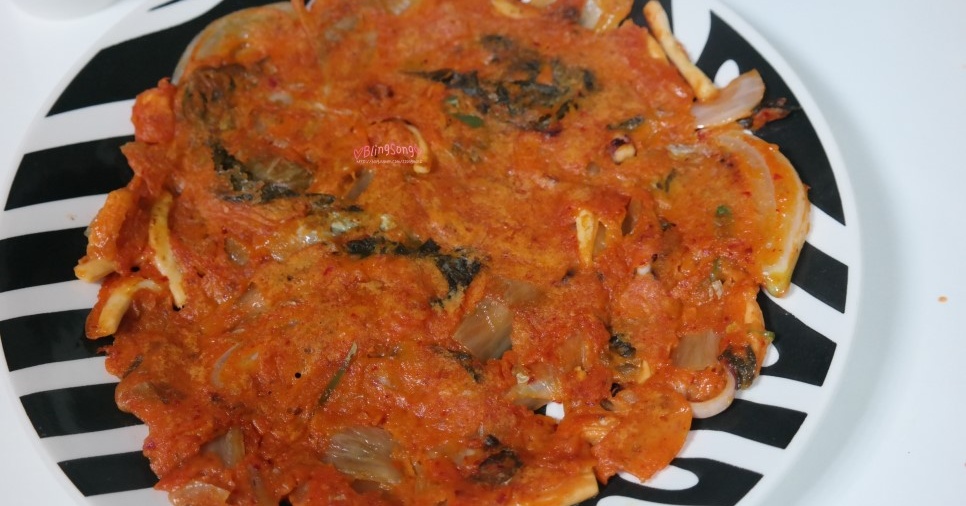 겨울에 가장 많이 해먹는 부침개 요리로는 김치전이 될 것입니다.신김치가 있어서 김치전을 했네요.그냥 김치만 넣어서 만들어도 되는데 오징어가 조금 들어가면 맛이 훨씬 좋죠.오징어는 다른 음식을 만들어도 맛있지만 저는 요리에 들어가는 해산물로는 가장 맛있다고 생각해요.오징어 작은 거 한 마리만 넣고 대파하고 쑥갓이 딱 있어서 조금 넣으니까 짜지 않고 맛이 딱 좋네요.