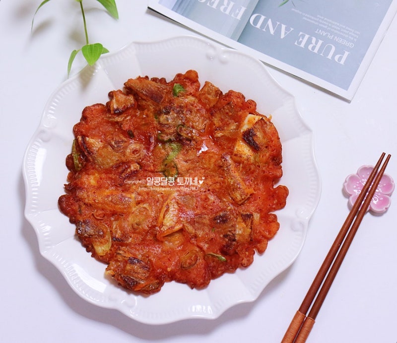 겨울에 가장 많이 해먹는 부침개 요리로는 김치전이 될 것입니다.신김치가 있어서 김치전을 했네요.그냥 김치만 넣어서 만들어도 되는데 오징어가 조금 들어가면 맛이 훨씬 좋죠.오징어는 다른 음식을 만들어도 맛있지만 저는 요리에 들어가는 해산물로는 가장 맛있다고 생각해요.오징어 작은 거 한 마리만 넣고 대파하고 쑥갓이 딱 있어서 조금 넣으니까 짜지 않고 맛이 딱 좋네요.