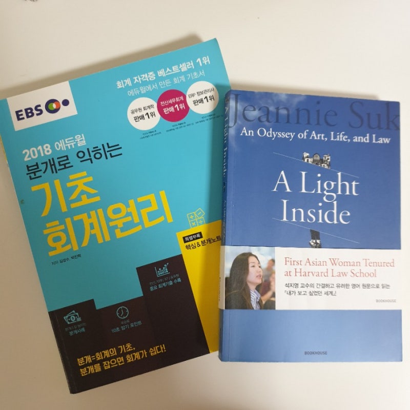 요즘 내가 하는 공부 2개에 대해서 간단히 소개하겠습니다.저는 최근 회계와 영어를 공부하고 있습니다.1. 회계 책:분노에서 익힌 기초 회계 원리(에듀 윌)회계 원리 2급 자격증을 목표로 공부하고 있습니다.저는 대학에서 경영 관련 학과를 전공하지 않습니다. 그런데 회사 생활을 하면서 많은 회계 용어에 접하게 되었습니다.그때마다 급히 내 자신이 싫으면 매니저가 되고부터는 우리 팀의 특정 활동이 결국 손익 계산서에 어떤 영향을 미치는지 설명할 수 있어야 한다는 생각이 들어 회계 공부를 결심하게 되었습니다.에듀 윌의 “분화에서 익힌 기초 회계 원리”의 책 1권을 1회독한 상태여서 아직 회임(?)상태지만 향후 2~3회 재독해 회계와 친해질 예정입니다. (웃음)영어 책:ALight Inside(Jennie Suk)한국인 최초의 하버드 법대 종신 교수가 된 석·지영 교수의 자서전을 영어 원서로 읽고 있습니다.저는 영어를 잘하는 여성 리더들의 이야기를 듣는 게 정말 좋아합니다.강·교은화 외교부 장관의 인터뷰 영상도 자주 보는데, 석·지영 교수의 자서전도 배울 많아서 추천합니다.아직 읽고 있는 곳이지만 석·지영이 교수가 하버드 법대 교수가 되기까지 과정과 그 안에서 성장통을 간결하고 고급 어휘와 문구로 표현했습니다.저는 일단 계속 읽고 모르는 단어에 노란 색 형광 펜을 바르고 옆의 빈 칸에는 단어의 뜻을 한글로 씁니다.초반에 단어장을 따로 만들기도 했는데 문맥을 기억하면서 외우는 것이 더 효과적이라고 생각하고 이렇게 있습니다.나는 이 책도 회계 원리의 책처럼 2~3회 재독 할 예정입니다. 그 때는 아마”가”에 적어둔 단어를 보지 않고 빨리 읽을 수 있다고 희망합니다.(웃음)