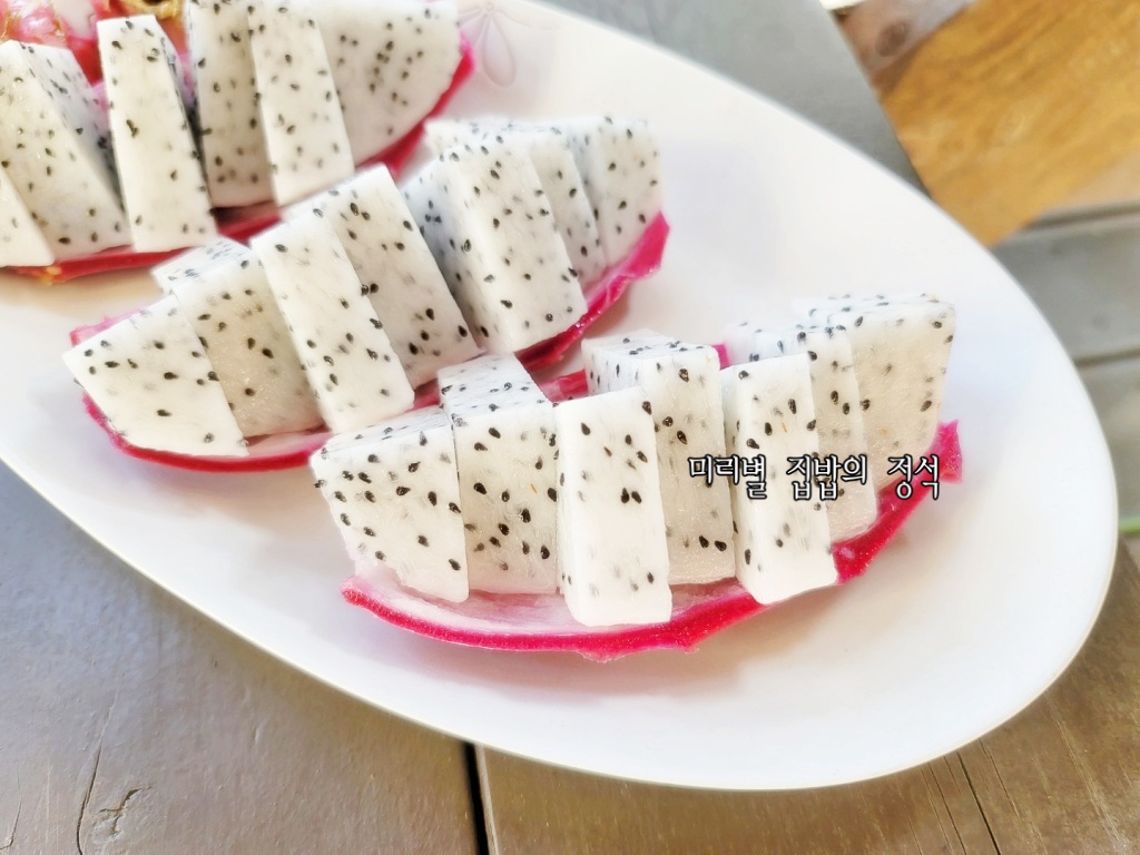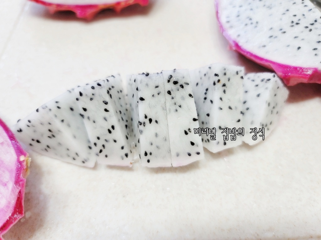 껍질위에 과육을 넣어주시면 끝~!! 용과는 어렵지 않겠죠?