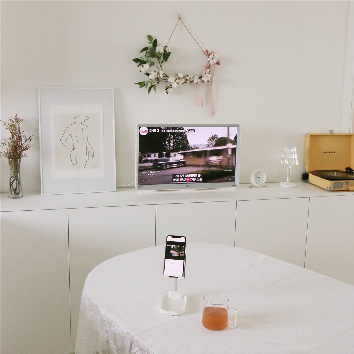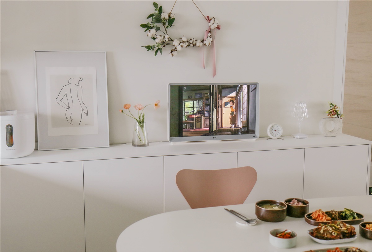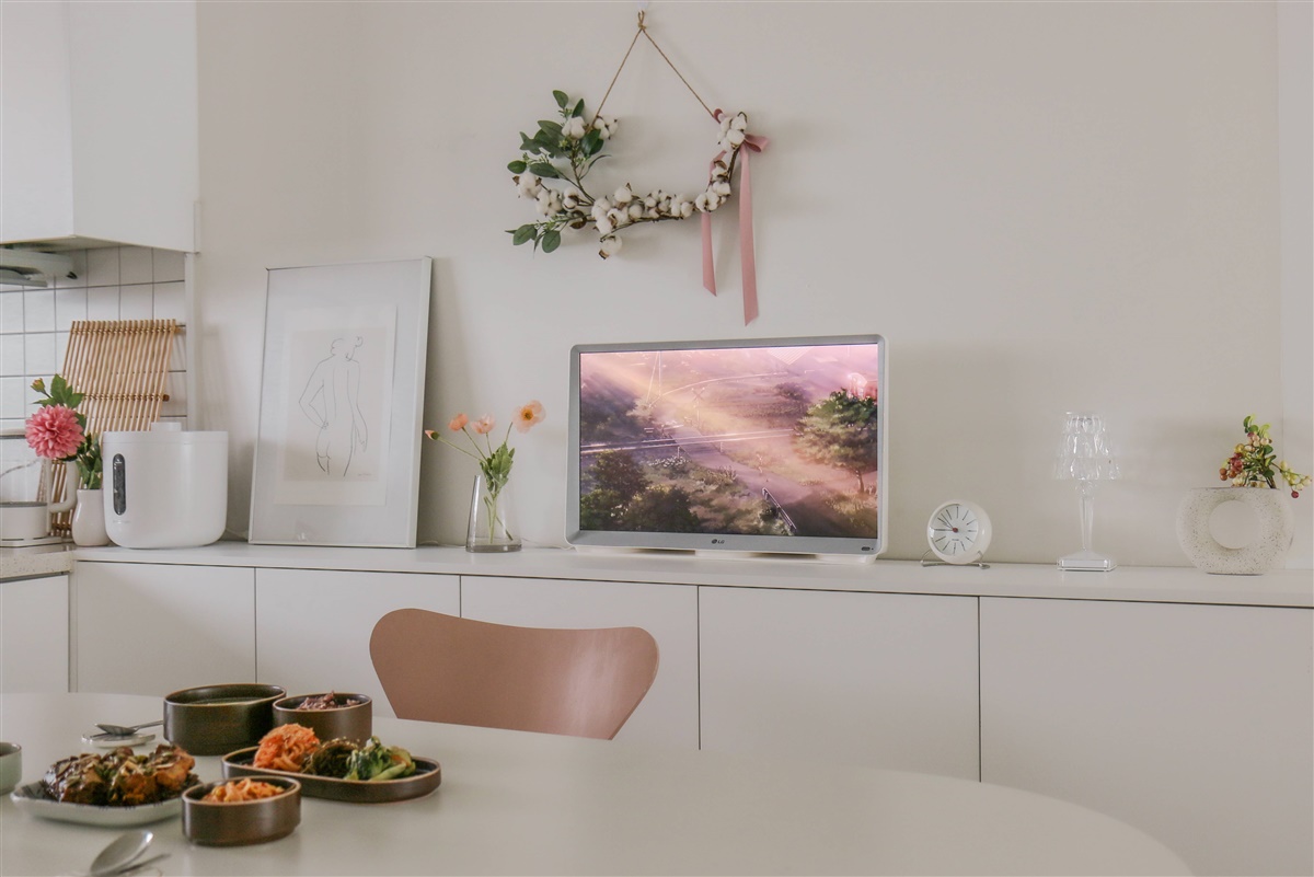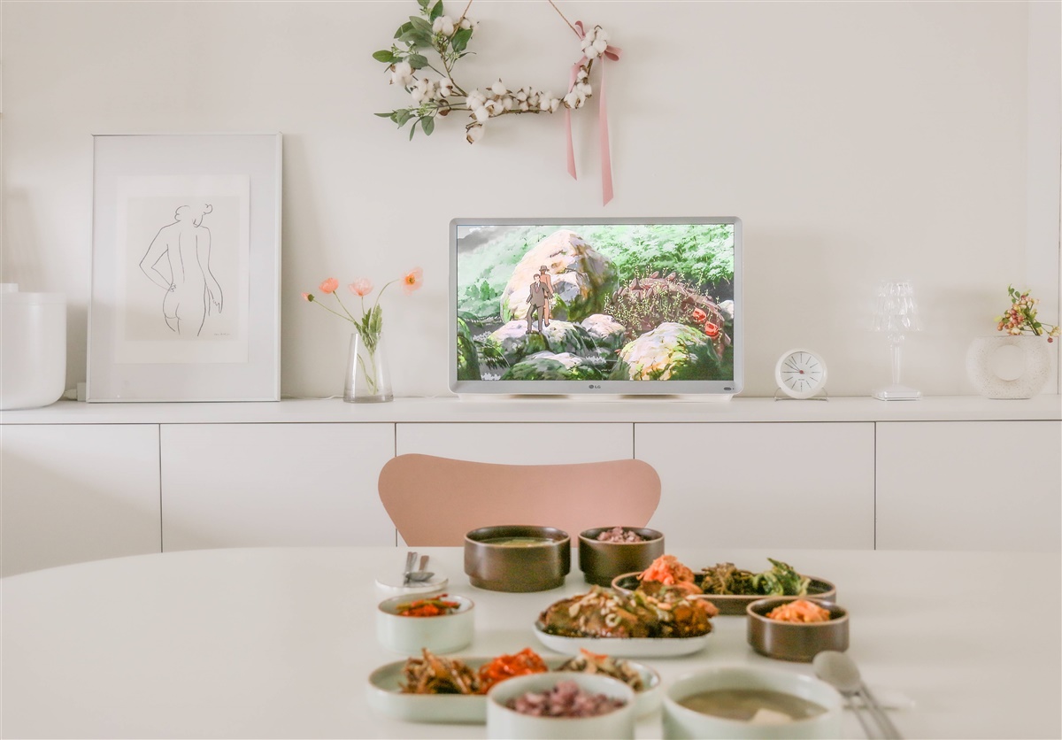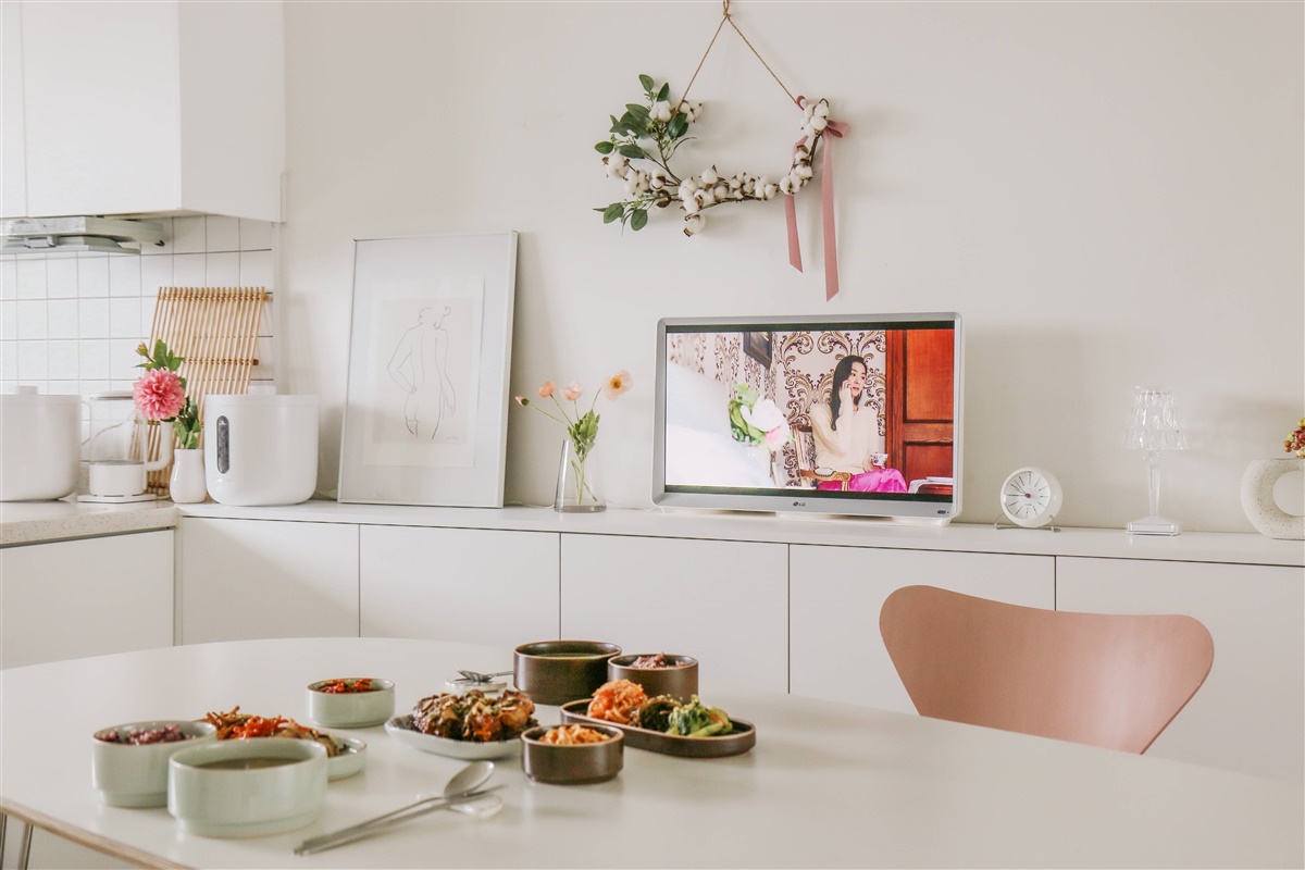 거실 TV 각도가 나오지 않는 집도 주방 수납장에 올려 사용하면 밥을 먹으면서도 언제든지 TV를 볼 수 있어서 정말 좋아요.^^