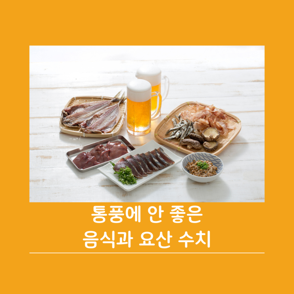 통풍에 나쁜 음식·알코올(특히 맥주). 붉은색 고기···내장류(호르몬, 얼룩조, 기아라, 간 등).· 일부 해산물(등푸른 생선, 새우, 멸치, 조개 등).· 설탕이나 과당이 많이 포함된 음료나 식품.·잡곡 · 꿀