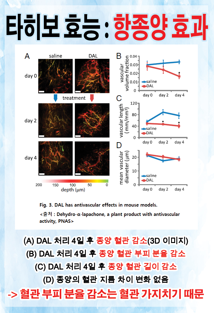 DAL 성분의 역할이 암의 신생 혈관 확장을 방해하고 암이 전이되지 않도록 억제하는 것이라고 합니다.