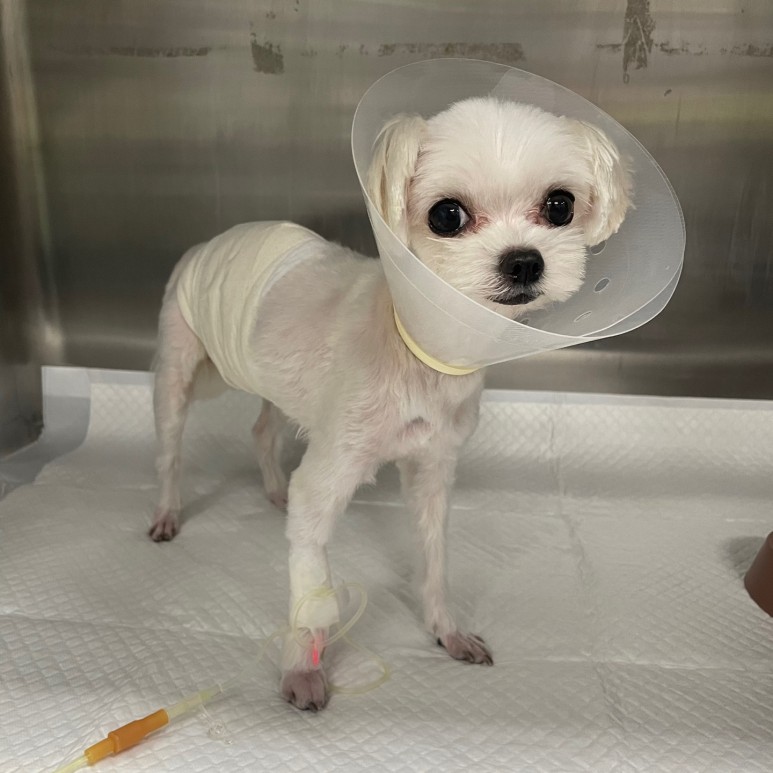 수술을 무사히 마치고, 작은 체구의 아이라고 걱정했지만, 마취를 잘 회복하고 꼬리를 흔들어 주는 모습에 우리도 안도의 한숨을 내쉬었습니다.통통하게 불룩한 배도 날씬해졌어요내원 당시 체중 2.2 킬로그램에서 수술 후 자궁을 제거했더니 1.6 킬로그램으로 확인되었습니다.자궁 내 고름이 상당히 많이 막혀 있었던 것을 알 수 있습니다.3 일 동안 급속히 증상이 나와 힘들었을 텐데, 건강하게 회복하고 있습니다.