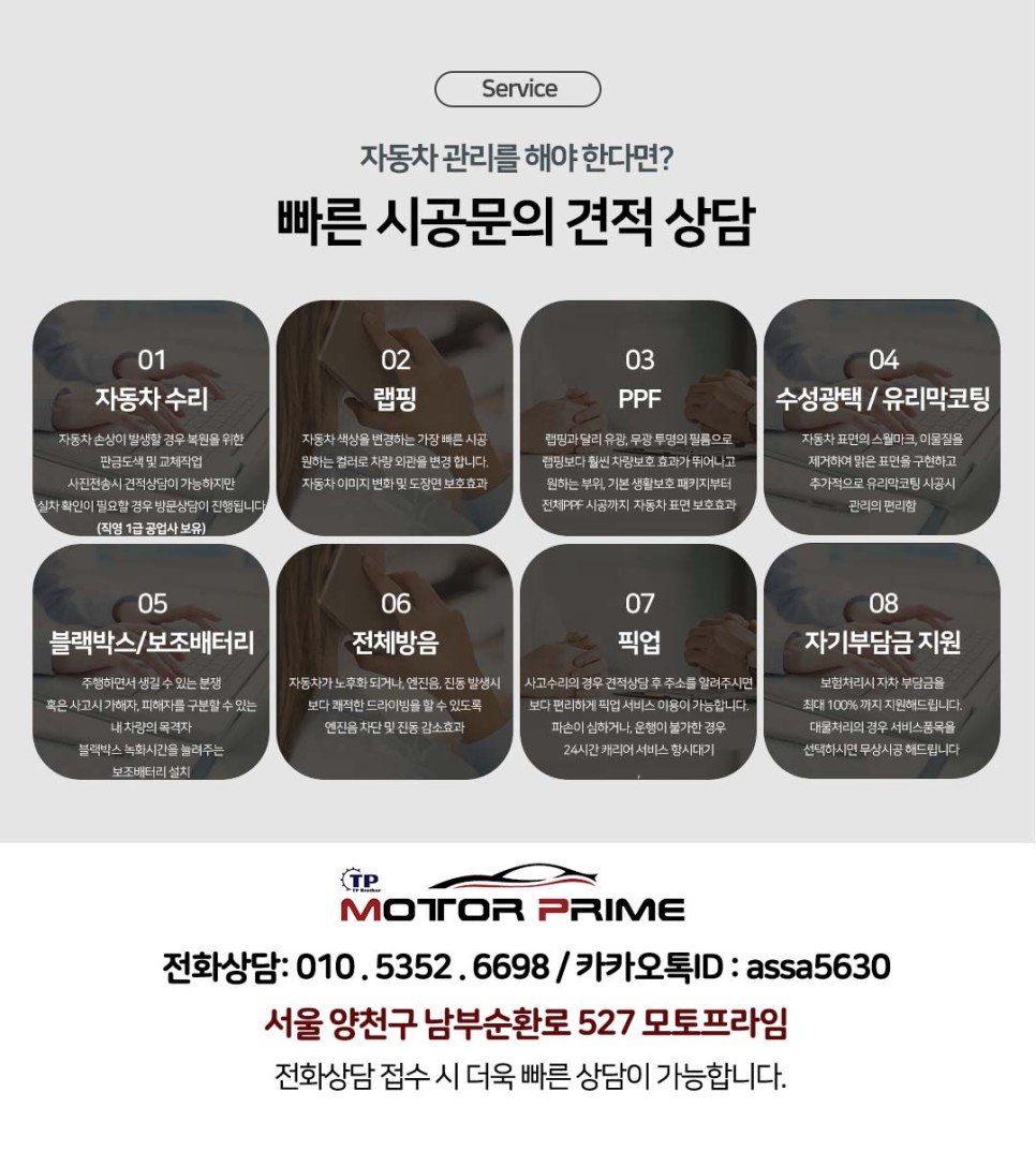 차량수리/차량사고수리/차량수리비용/수리견적문의는 하단의 연락처 및 카카오톡 문의 또는 네이버톡배너를 클릭하시면 24시간 무료로 상세상담이 가능합니다.