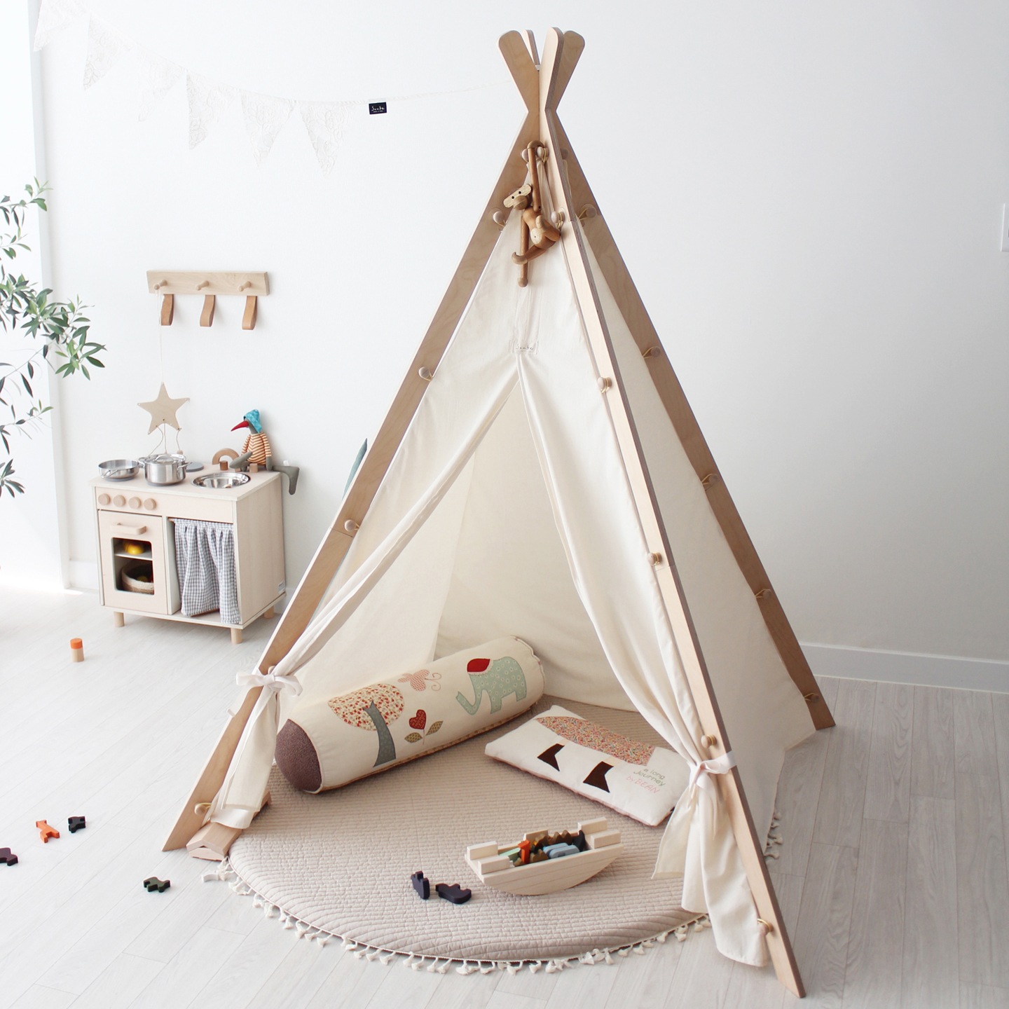 펼쳐볼게요!그럼 이렇게 멋진 인디언 텐트가 만들어집니다.그런데 하채이는 힘이 없어요.안쪽은 이렇게 아늑해요.비싸고 좋네요.창문도 있어요.즐거워 보이는 아기!크리스마스 선물도 좋지만 없어도 된다는 생각이 더 중요해요.선물에 의지해서는 안되니까거실에서 하루 놀고 텐트는 방에…아가방은 이렇게 텐트가 생겼어요!토끼인형과 아기가 아끼는 인형을 모았어요.아늑하네요.아기 아지트 완성!크리스마스 선물은 이걸로 10개가 넘네요.아가씨 메리크리스마스~