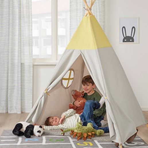 올해 아기 크리스마스 선물은 여러가지인데…이케아에서 구입한 페브릭 인디언 텐트가 있습니다.서커스 텐트와 인디언 텐트 중 아가는 인디언 텐트를 고르고 있었어요.