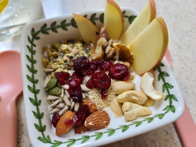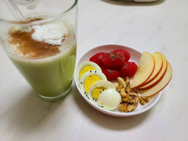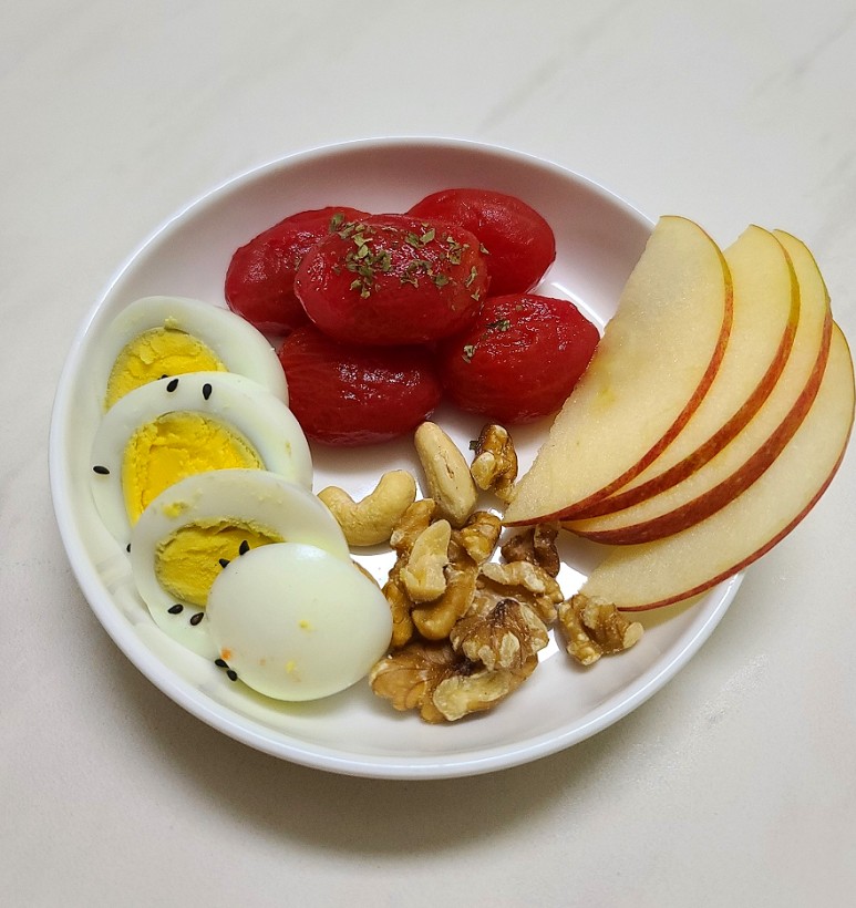 계란+사과+삶은 방울토마토+호두&캐슈넛을 함께 먹고