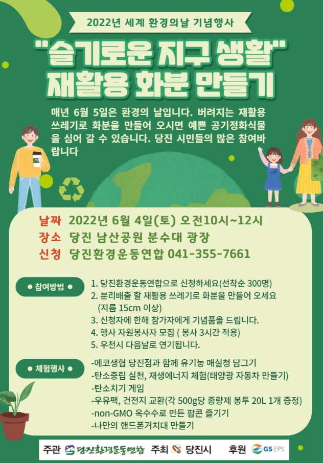 우리 모두가 깨끗한 환경, 아름다운 지구를 지키고 건강하게 살 수 있도록 ‘친환경 라이프스타일’로 거듭나도록 노력합시다!!