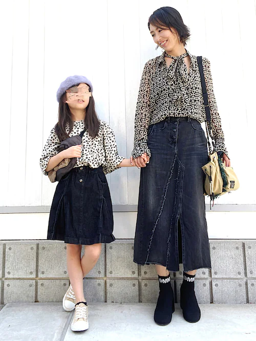 초등학생 딸과 비슷한 옷으로 맞춘 모습입니다.