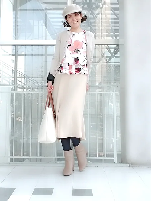 헤어스타일은 이쯤에서 일본 중년 여성의 패션 코디를 몇 가지 살펴봅시다.48세의 여성