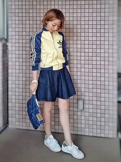 아디다스 오리지널 집업과 데님 미니스커트로 매치하였습니다.