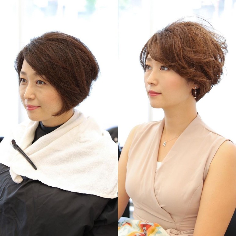 일본의 중년 여성 중에는 짧은 머리도 당연히 있습니다.