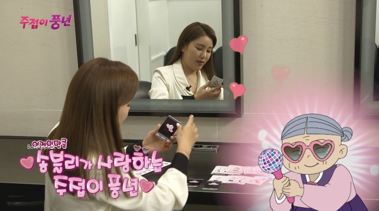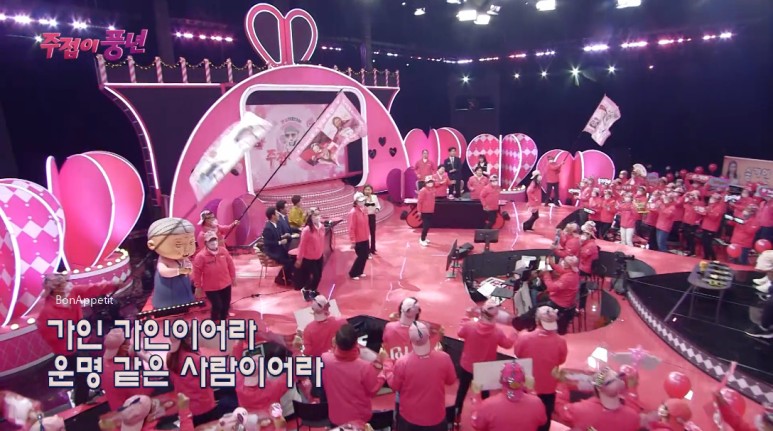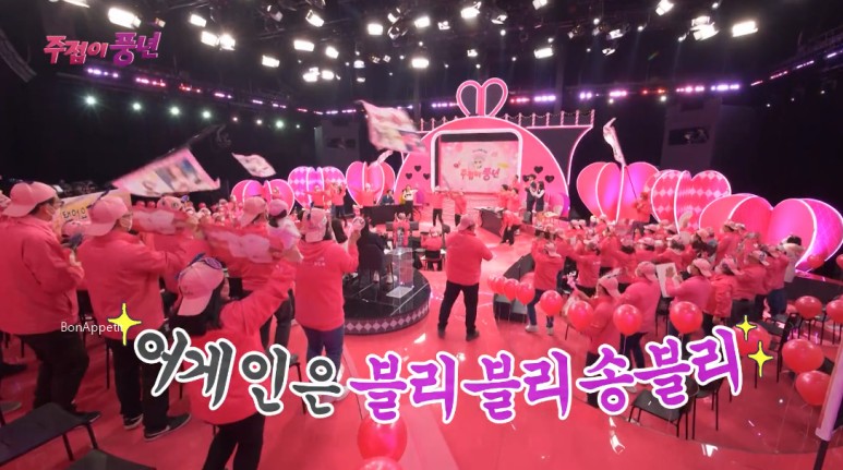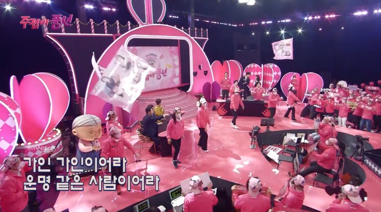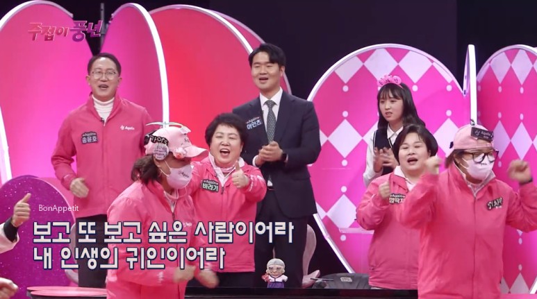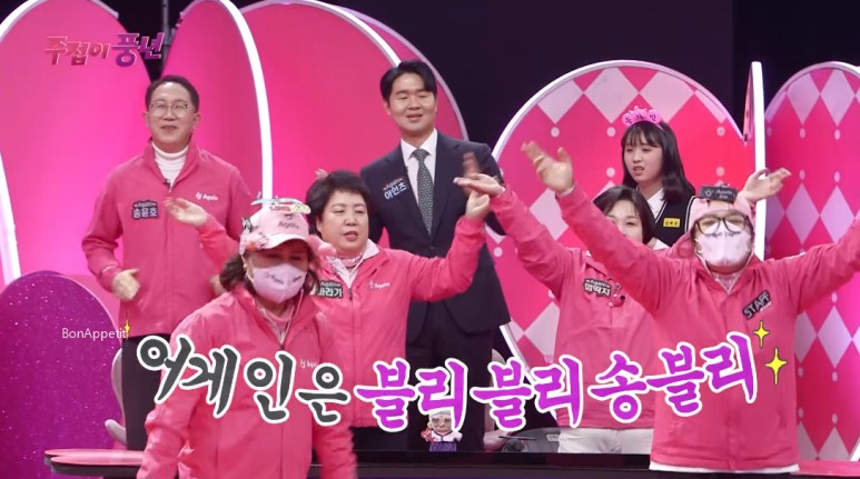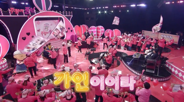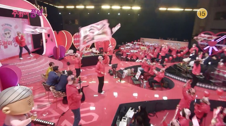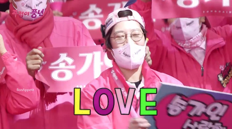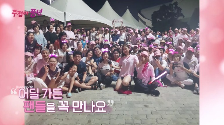 K에서는 추접이 풍년이 본격적으로 오늘 첫 방송되는 가운데, 1회 게스트로는 트로트 가수 송가인과 팬카페 어게인이 추접당으로 출연했다. 송가인의 숭배 댓글은 분홍색 단체복과 모자, 슬로건, 플래카드는 물론 깃발로 압도적인 포스를 날려 모두를 감탄하게 했습니다.
