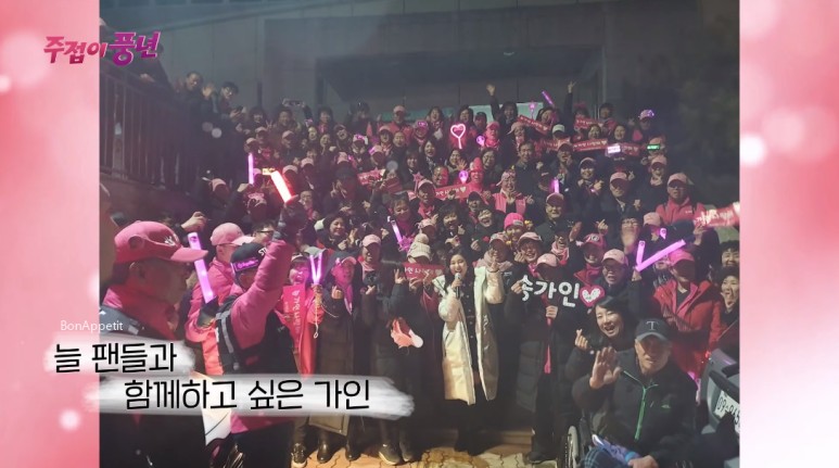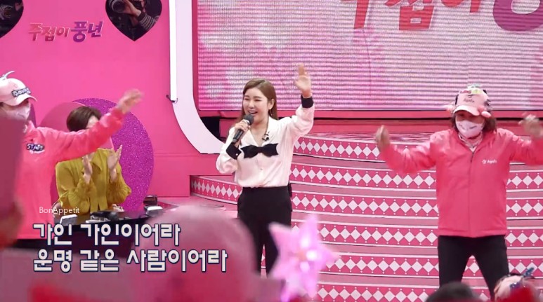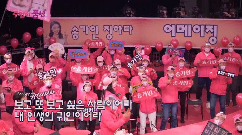 송가인은 팬들을 위해 가인이 아라를 열창하는 모습과 자신과 팬클럽 어게인을 위한 추점이 풍년 핑크 무대에 자신을 위한 프로그램이라며 만족감을 드러내기도 했습니다.