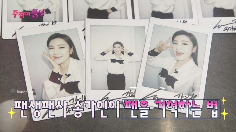 또한 추점이 풍년으로 공개한 영상에서 송가인은 “어딘가 갈 때마다 카페 같은 곳을 빌려 팬들을 만나고 소통한다”며 “저를 보기 위해 멀리서 차를 타고 계시는데 노래만 부르고 가면 좀 그렇다, 행사가 끝나면 만난다”고 말했고 송가인은 팬들의 팬카페 어게인 닉네임과 그들의 에피소드 하나하나 기억하는 모습을 보이기도 했습니다.