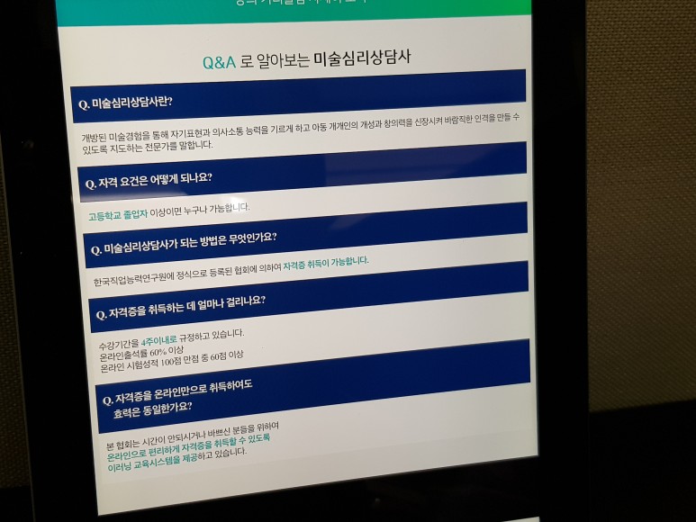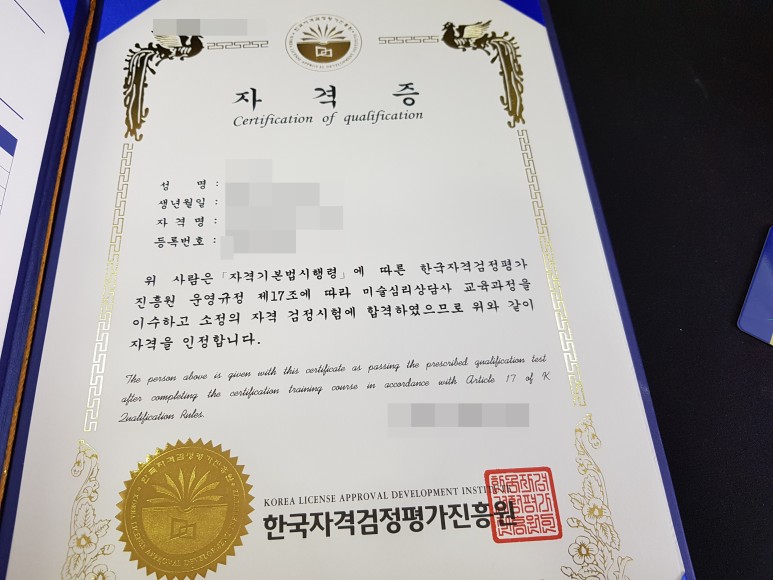 하지만 민간자격증의 경우 주의해야 할 것이 어떤 곳에서 교육을 받을지 신중하게 결정해야 한다는 것입니다. 공신력 있는 곳을 통해서 취득해야 하거든요. 제가 선택한 기관이 국가로부터 인정받았는지 확인이 필요합니다. 세세한 부분을 확인하지 않은 채 라이선스를 발급받았지만 활용하지 못할 수도 있기 때문입니다. 열심히 공부해서 취득했다면 이력서에 정확하게 작성할 수 있어야겠죠. 저도 여러 곳을 알아보고 신중하게 결정할 수 있었어요. 한국직업능력연구원에 정식으로 등록된 곳으로 미술심리상담사 자격증 발급번호도 확실히 부여되어 있다고 해서 믿고 선택할 수 있었습니다.