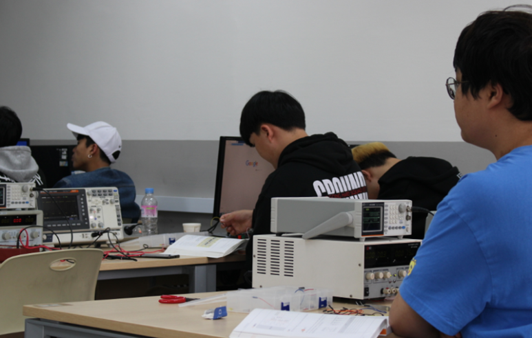 공대 학생의 경우 1학년 때 배운 지식 중에 불필요한 지식이 몇 가지 있지만 전자공학과 학생의 경우는 1학년 때 배운 지식을 하나라도 모르면 언젠가는 반드시 장애물이 되어 공부하기 어려워지기 때문에 1학년 때부터 꾸준히 공부해야 하는 학과입니다.