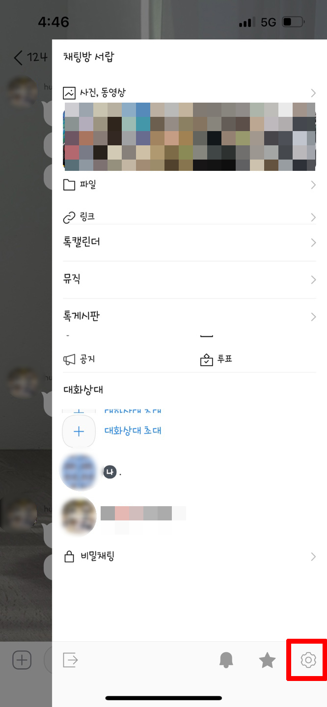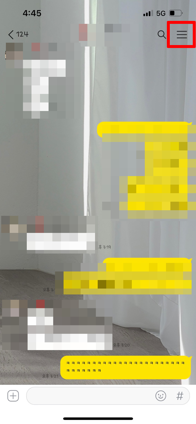 먼저 채팅방을 하나 지정하고 진입한 후 맨 오른쪽 줄 3개의 아이콘을 누르세요.