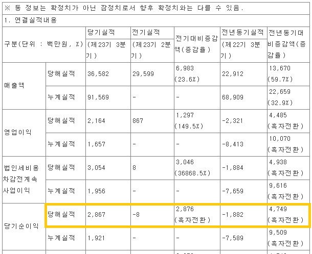 보시면 11/15일 오늘 주가가 7% 이상 상승했다는 사실을 알 수 있습니다. 그 이유가 뭔지는 확실하지 않네요. 흑자전환도 재료일 수 있지만 관련 공시는 11/11(금)에 나왔거든요.