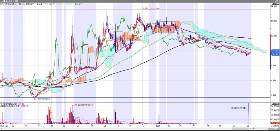 엄청나게 상승했어요. 2020년 3월 19일 신저가 4940원에서 2021년 1월 20일 신고가인 18,450원의 3배 가격이 1년도 안돼 폭발적으로 증가하여 조정 중입니다. 계속 하락하고 있어요. 실적이 개선되고 뉴스가 뒷받침된다면 더 상승할 수 있지 않을까 생각됩니다.Stap.4 뉴스 & 공시주가 상승 및 하락 신호탄 1. 뉴스