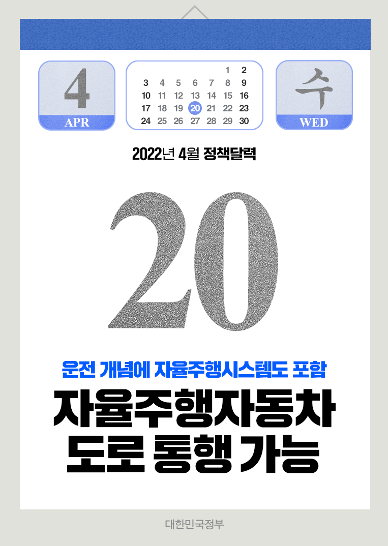 국내에서도 도로통행법이 개정돼 2022년 4월 20일부터 자율주행이 가능합니다.