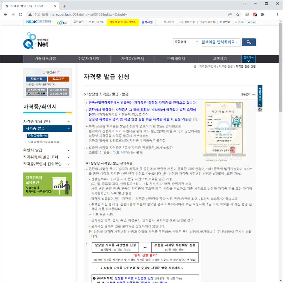 오늘은 한국산업인력공단에서 취득한 국가기술자격증인 기사 또는 산업기사를 재발급하는 방법에 대해 공부했습니다.필요에 따라 활용하시기 바랍니다.