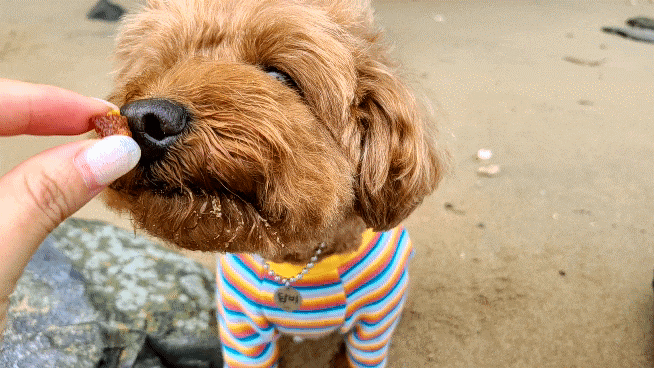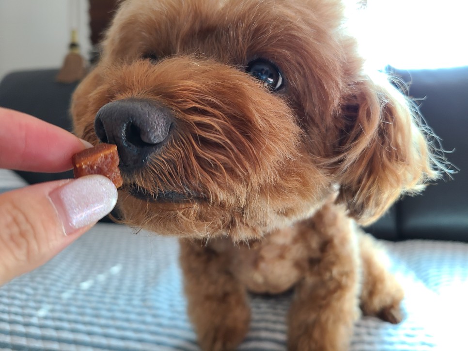 부드러운 식감의 한 입 트리트먼트, 칭찬, 후각놀이 등 다양하게 활용 가능하며 산책이나 나들이에 휴대가 간편한 베큐어!