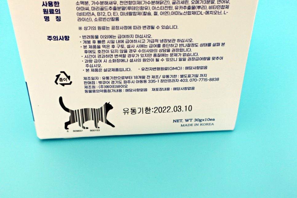 마리골드, 아스타크산틴이 함유되어 눈 건강에도 도움을 준다고 합니다.1. 식품 알레르기가 있는 2. 모질로 거칠고 푸석푸석한 3. 피부가 민감한 4. 눈 건강이 걱정되는 친구와 함께 먹어요.성장기에도 좋지만 부드러운 식감에 불과해 노령기 고양이와 반려견에게 추천하는 영양 간식이었습니다.