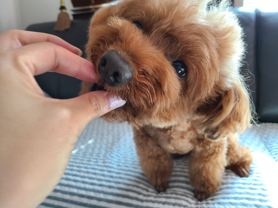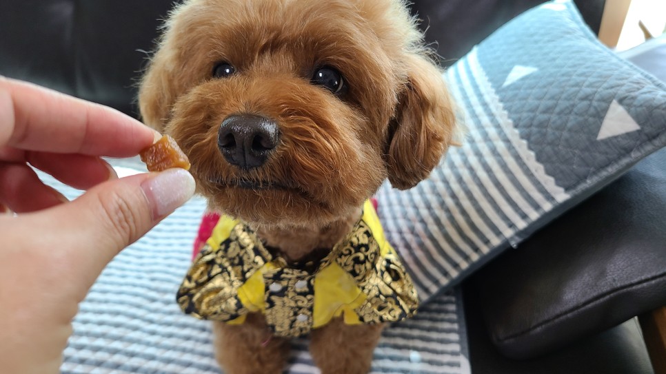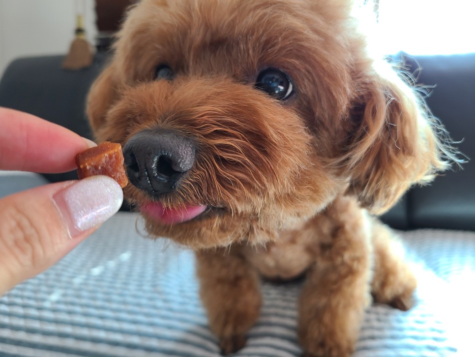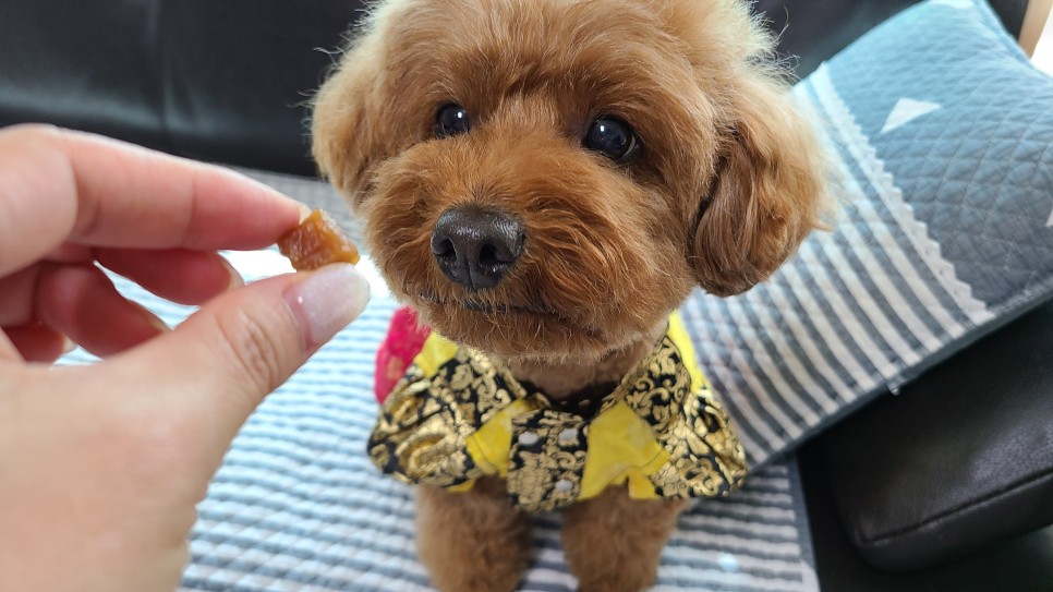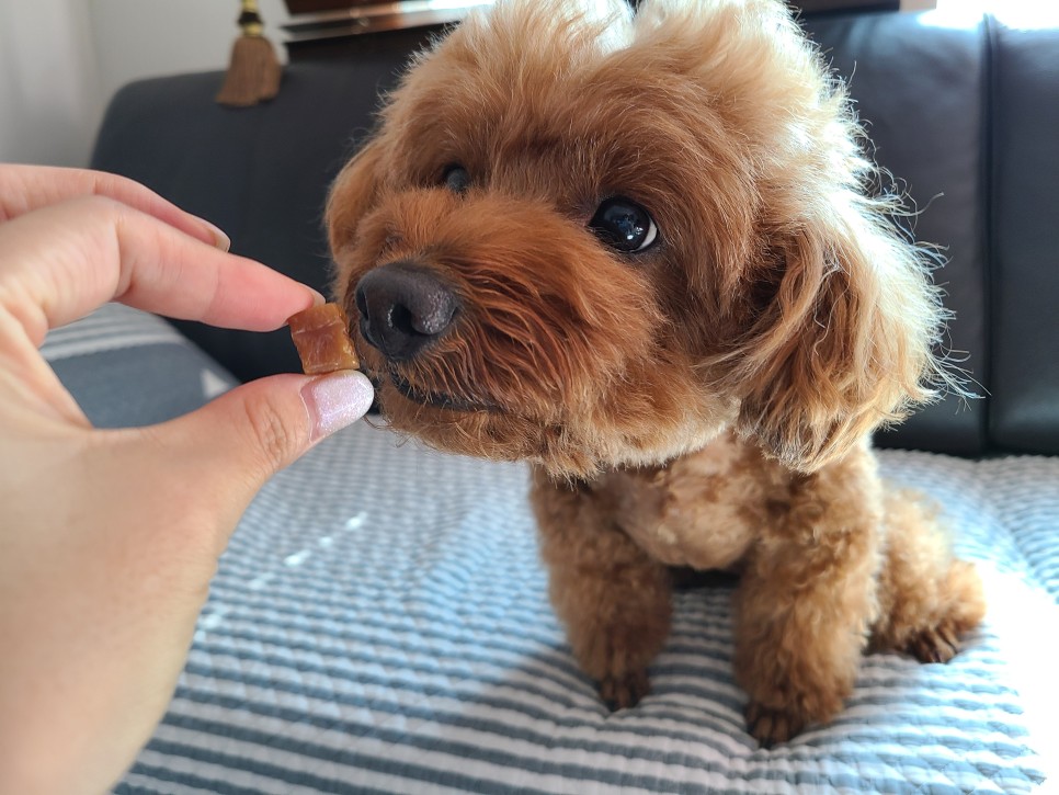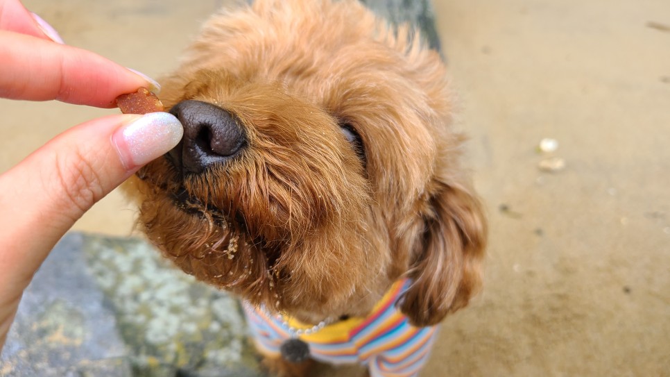 집에서도 한 입 쓱 사진을 많이 찍는 담비는 촬영 시 보상 트리트먼트로 주기에 좋았습니다.