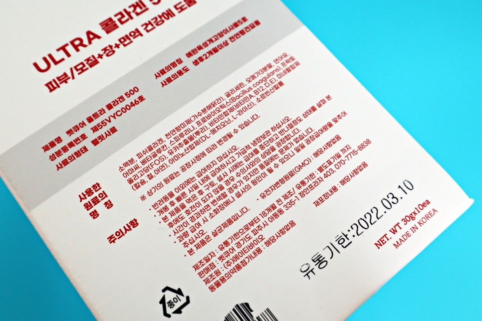 프리미엄 피쉬 콜라겐 500Da 단일 단백질로 위산과 위내효소로 분해되기 쉬워 피부조직까지 안전하게 소화흡수,