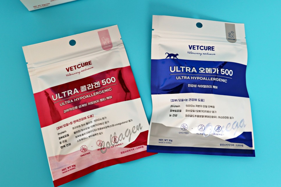 베큐어 VE TCURE 반려동물/애완묘 처방 간식 울트라콜라겐 500 피부 모질/장+면역 저알레르기 멀티케어