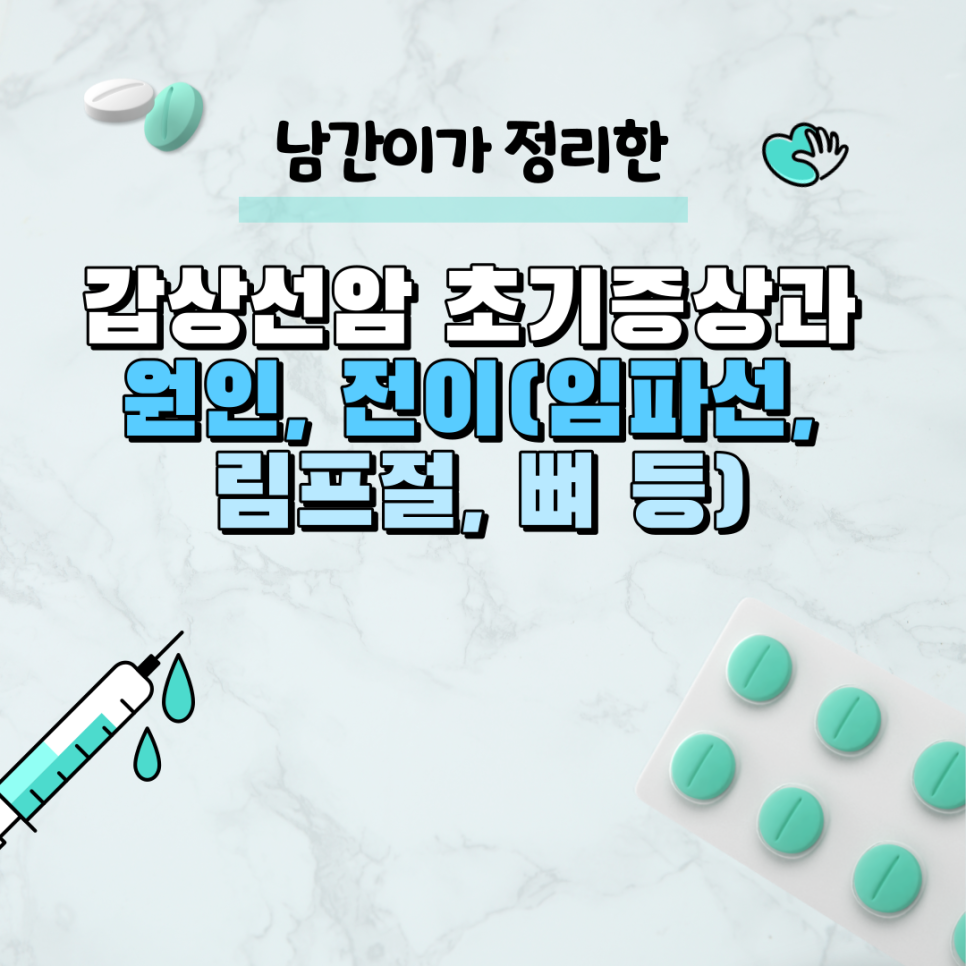 오늘은 남성간과 갑상선암의 초기 증상과 원인, 전이(림프절, 뼈 등)에 대해 간략히 알아보겠습니다.