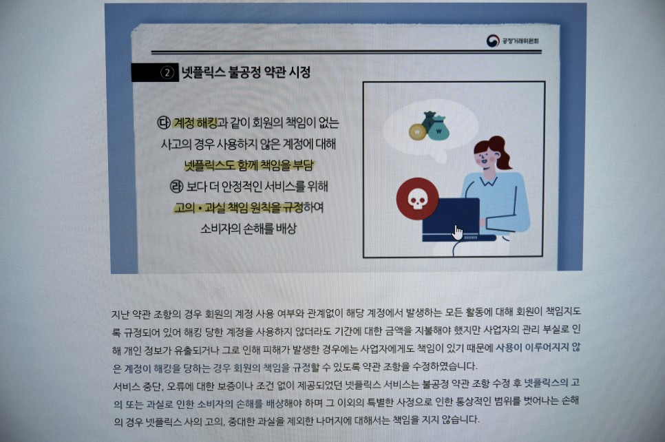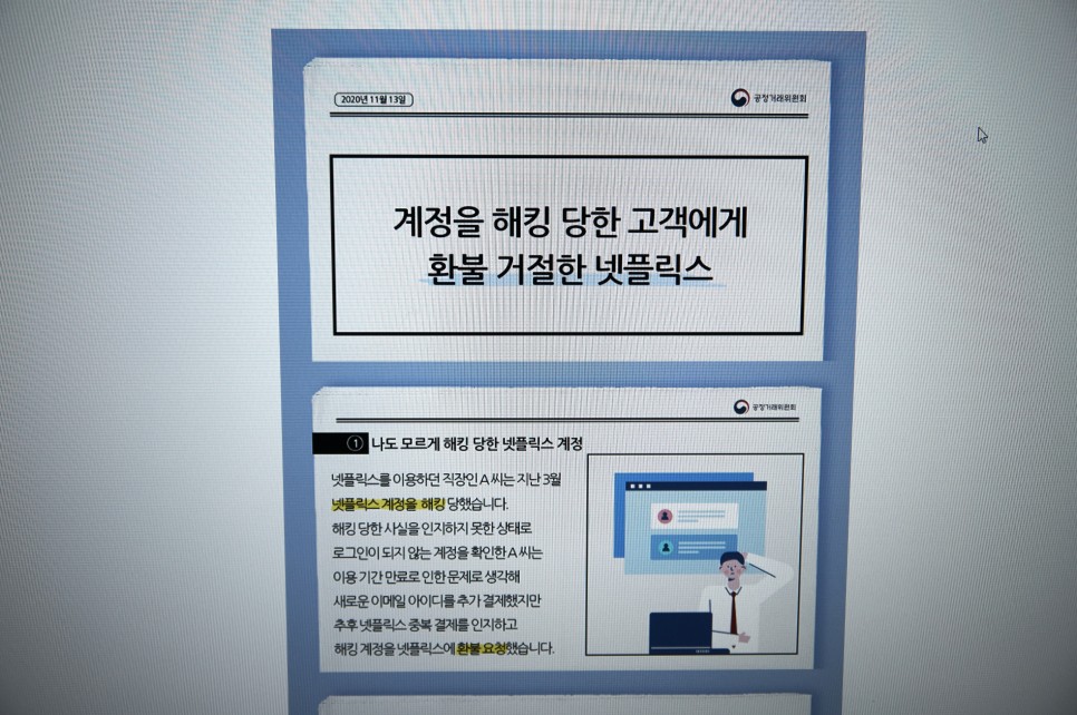 계정을 해킹당한 고객에게 환불을 거절한 넷플릭스, 그런 불공정 거래를 확인하고 신속하게 조치해 소비자가 피해 보상을 받을 수 있도록 조치한 공정거래위원회.