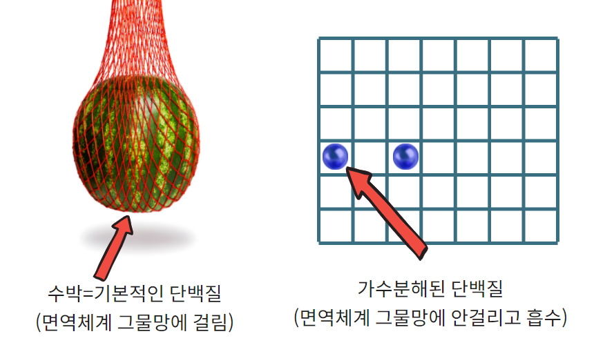 아주 작은 단백질로 가수분해를 하면 아이들이 평소 알레르기 증상을 보이는 단백질을 섭취해도 알레르기 단백질로 인식하지 않기 때문에 아이들이 알레르기 증상을 보이지 않게 된다고 합니다.