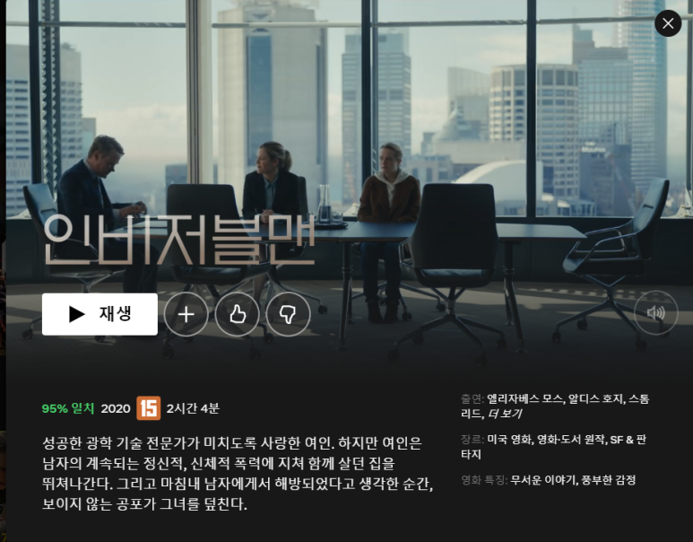 제목 그대로 ‘투명인간의 공포’로 시작하는 섬뜩한 이야기를 담은 작품으로 지난해 2월 26일 극장에서 개봉해 총 57만여 관객을 동원했습니다.